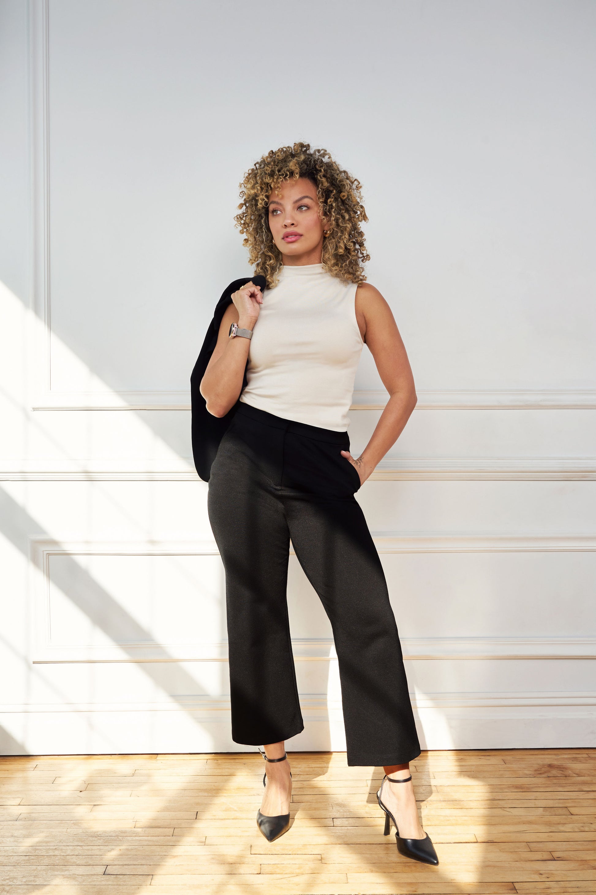 Get ready to elevate your wardrobe with our Classic Crop Flare Pant! A classic little black pant that will have you looking sleek and stylish. Perfect for any occasion, these pants are a must-have for any fashion-forward individual who prioritizes comfort! Say hello to effortless style! A closet staple.